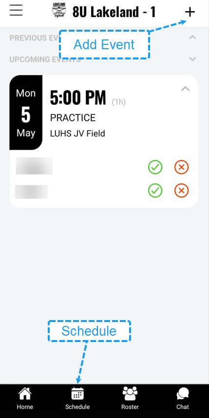 - Once enabled, after a game or practice is completed, you can report the attendance for that event.