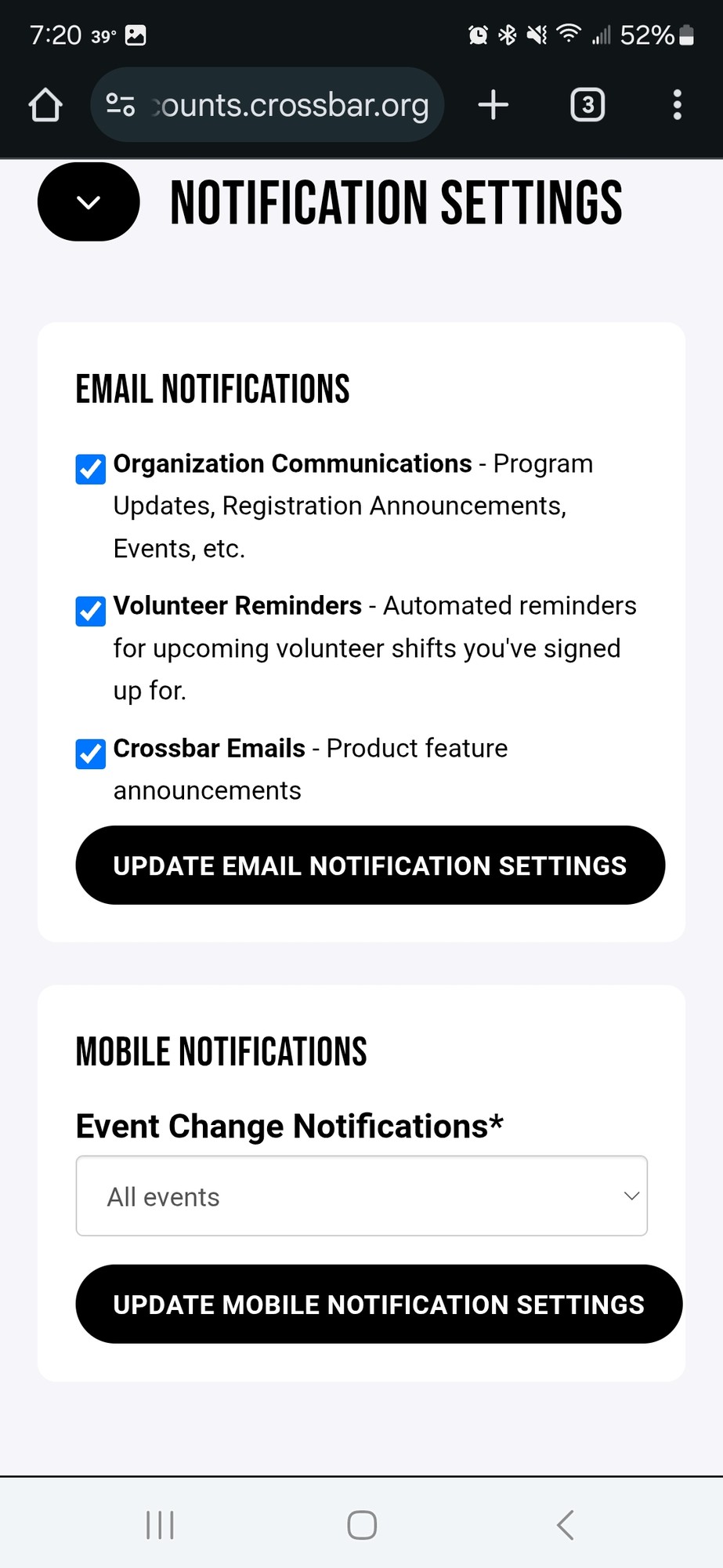 For more detailed management tasks including comprehensive scheduling and player attendance tracking, the Crossbar web platform is your go-to tool.