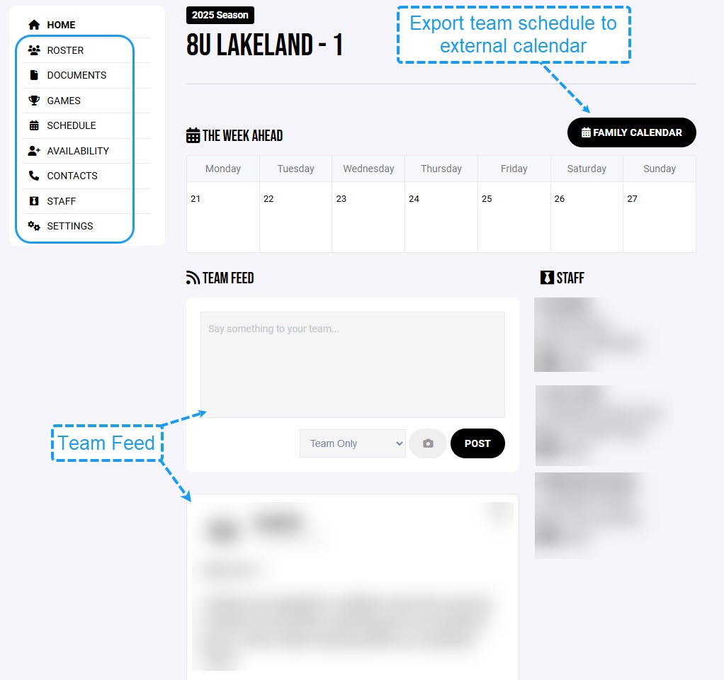 - Team Feed: Post announcements and updates visible to all team members. (This also sends an email to your team members)