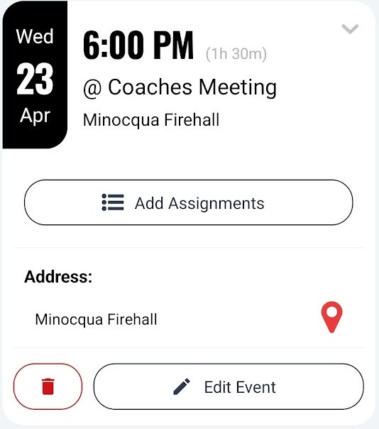 - Coaches have the opportunity assign parents to an assignment after clicking Edit Assignments on the event card.