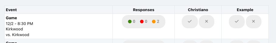 - Once enabled, the Availability Tab on your left menu will allow you to see who has responded for each event.